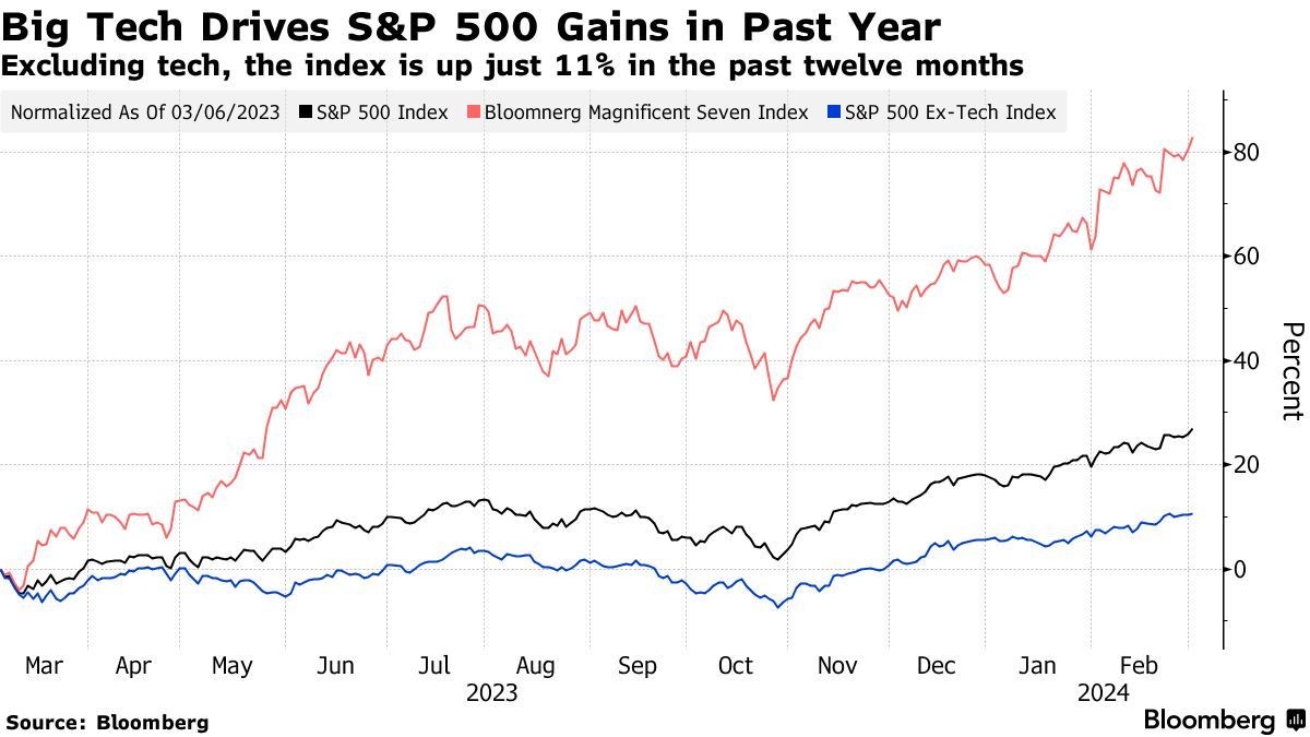 美股“七巨头”——苹果、微软、英伟达、亚马逊、Meta、Alphabet、特斯拉——今年推动标普500指数创下历史新高,部分原因是人工智能热潮的繁荣。这一涨幅使得华尔街策略师们在过去两个月上调了对标普500指数在今年年底的目标点位。