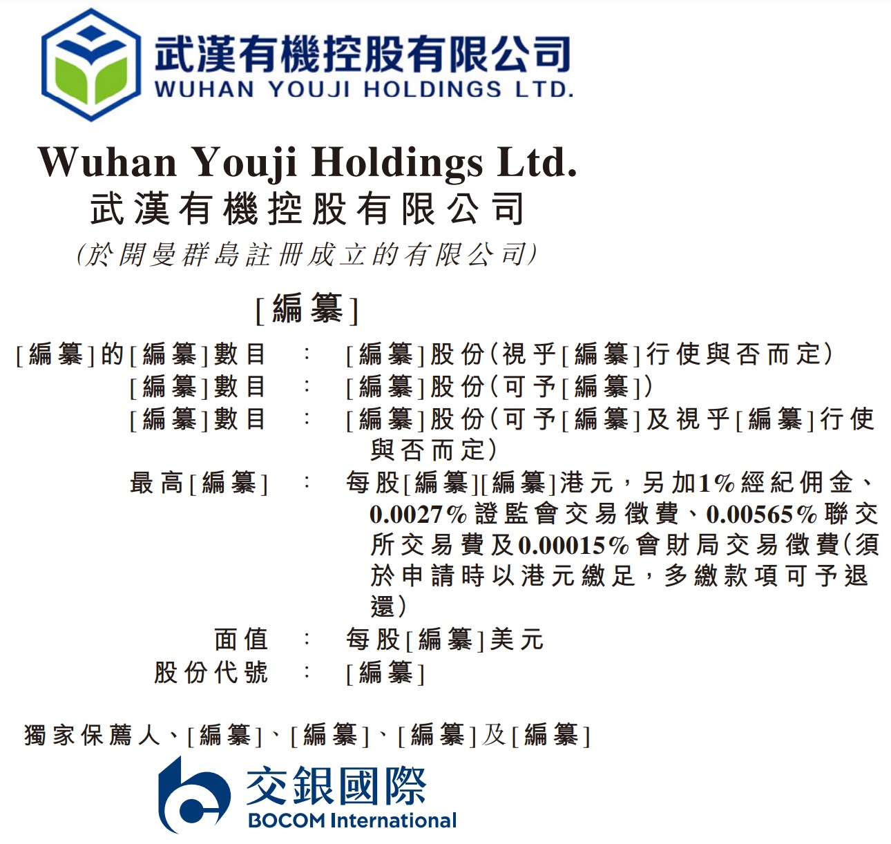 智通财经APP获悉,据港交所3月4日披露,武汉有机控股有限公司(简称:武汉有机控股)向港交所主板递交上市申请,交银国际为其独家保荐人。该公司曾于2023年3月1日、2022年6月17日递表港交所主板。
