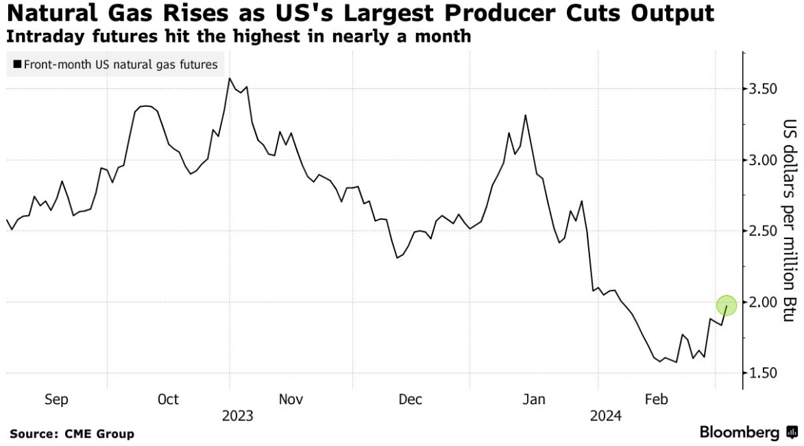 智通财经APP注意到,美国天然气价格飙升,此前美国最大天然气生产商EQT能源(EQT.US)表示,由于冬季异常温暖,导致供应过剩,价格暴跌,该公司将削减产量。