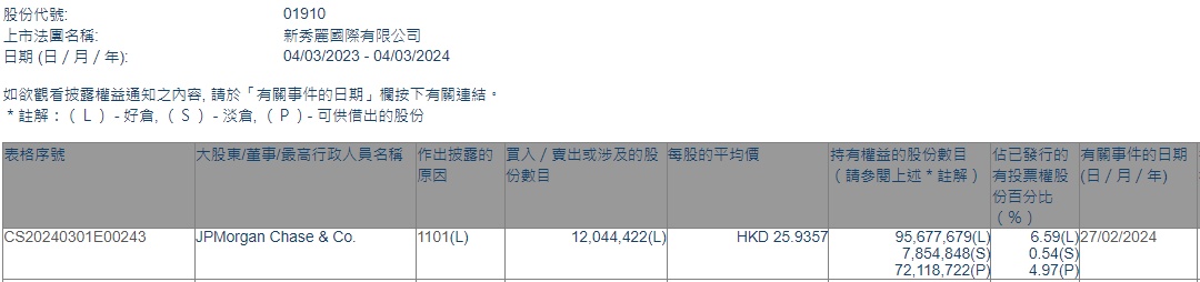 智通财经APP获悉,香港联交所最新资料显示,2月27日,小摩增持新秀丽(01910)1204.4422万股,每股作价25.9357港元,总金额约为3.12亿港元。增持后最新持股数目约为9567.77万股,最新持股比例为6.59%。