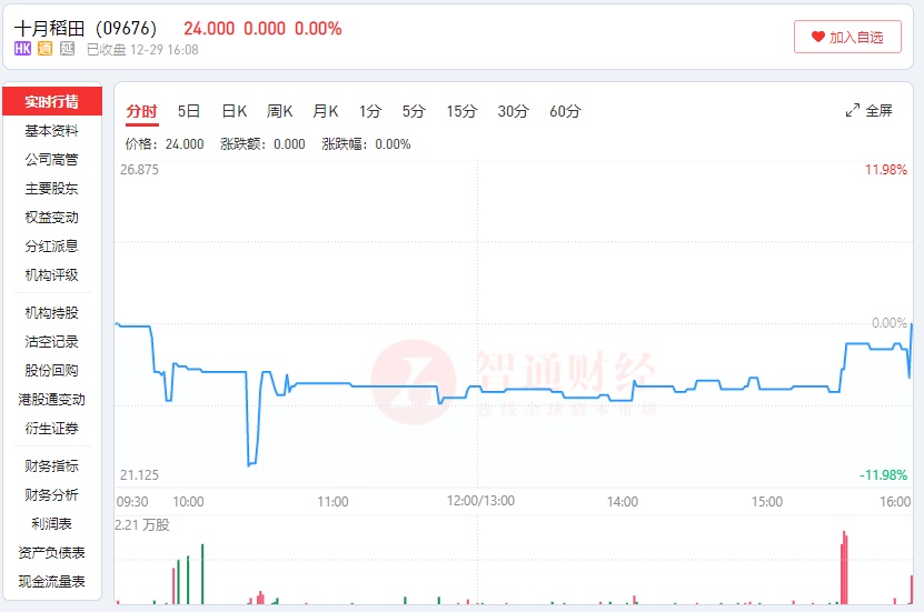 智通财经APP获悉,2月29日,“网红大米”品牌十月稻田(09676)发布盈利预警公告称,尽管该集团预期截至2023年12月31日止年度录得的收入将较2022年同期有所增加,经调整净利润(非国际财务报告准则计量)较2022年同期将下降45%以上。二级市场上,3月5日,十月稻田盘中一度跌超10%。
