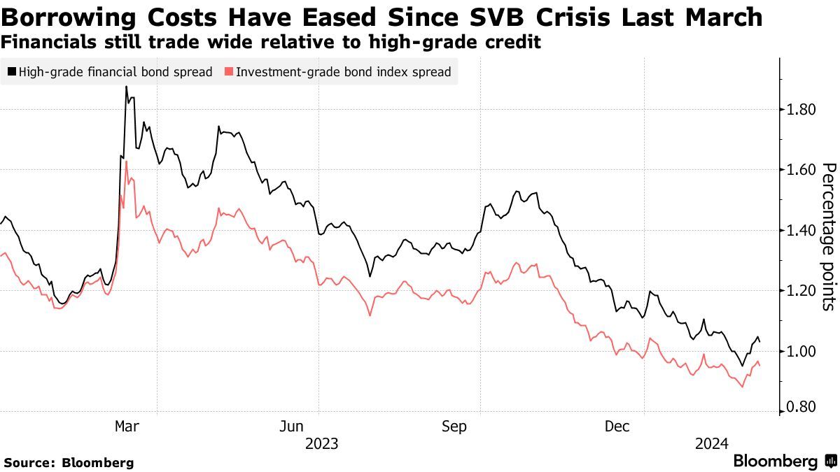 景顺北美投资级信用债业务负责人Matt Brill表示:“所有人都先抛售所有债券,之后再提问题。”他指的是去年3月硅谷银行倒闭引发的抛售,这扩大了银行债券利差。摩根士丹利指出,投资组合偏向表现不佳的商业房地产市场的一些地区性银行包括欧扎克银行(OZK.US)、硅谷国家银行(VLY.US)和韦伯斯特金融(WBS.US)。