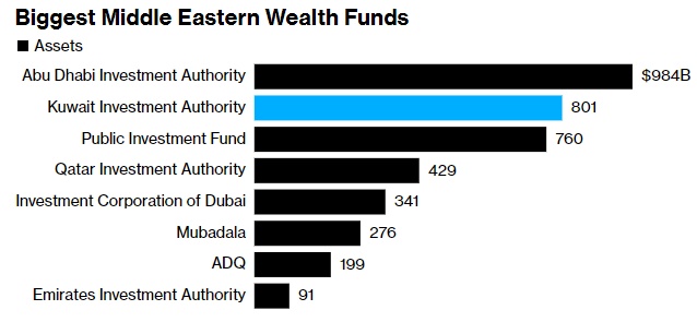 两位数的回报率将使科威特投资局管理的资产规模更接近1万亿美元大关,缩小与阿布扎比投资局的差距。阿布扎比投资局是海湾地区最大的国有投资机构。相比之下,挪威的1.6万亿美元主权财富基金是世界上最大的主权财富基金。