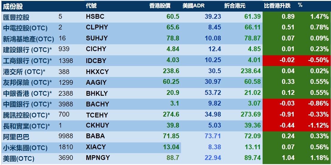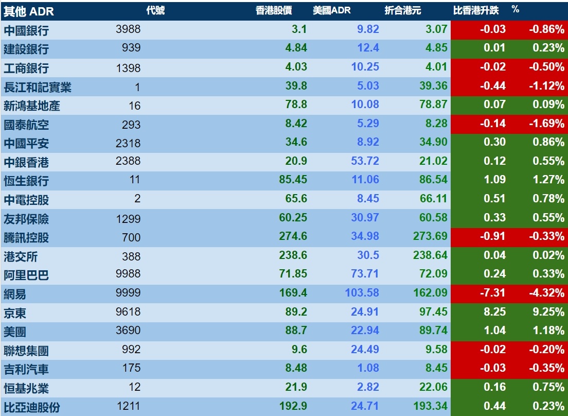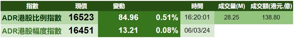 智通财经APP获悉,周三美股三大指数集体上涨,港股ADR指数上涨,按比例计算,收报16523点,较香港收市升84.96点或0.51%。