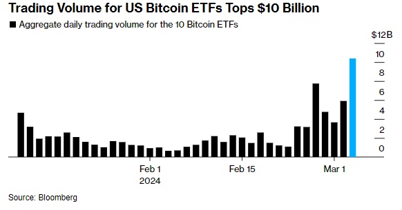 而推动这一局面的关键因素之一是美国证券交易委员会(SEC)于今年1月批准了比特币现货ETF,此前该委员会抵制比特币ETF的努力在去年遭遇法律失败。
