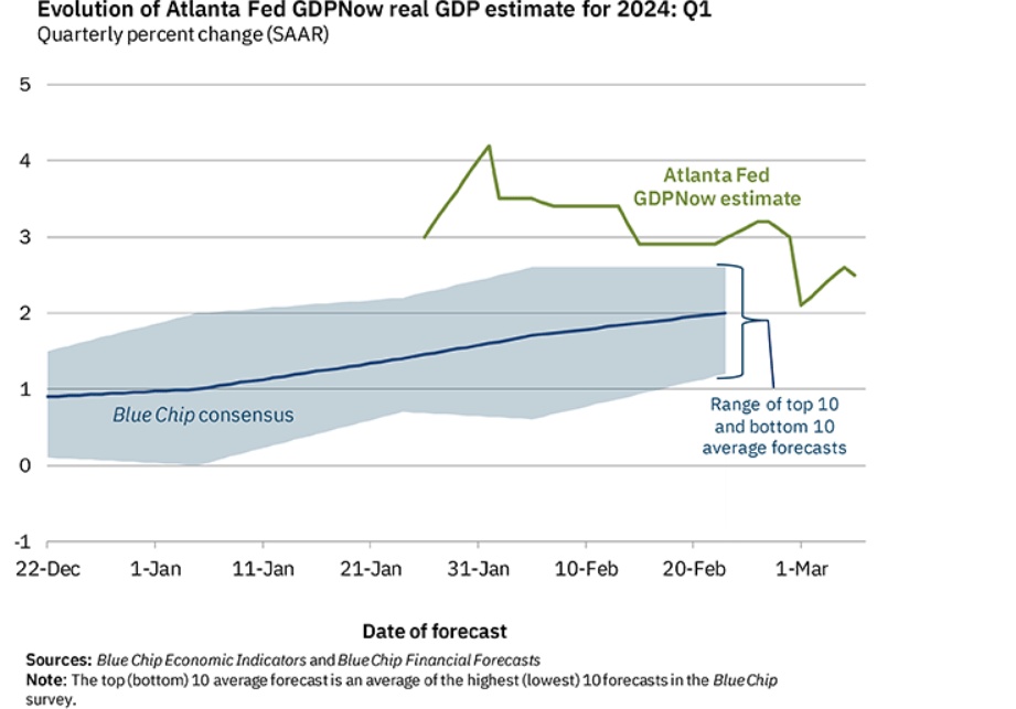 修正后的美国经济数据显示,美国经济结构比市场最初预期强劲得多,这对于美国经济前景可谓是个非常好的兆头。整体来看,修正后的数据显示库存投资数据美国商务部被下调,但消费者支出、州和地方政府投资以及居民和企业支出都有所上调,意味着美国经济结构更加健康。预测数据方面,亚特兰大联储的GDP NOW预测模型目前预计美国第一季度GDP年化季率将实现增长2.5%。