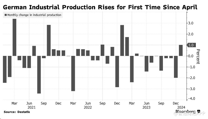 智通财经APP获悉,德国联邦统计局周五公布,受建筑业带动,德国1月季调后工业产出环比上升1%,为9个月来的首次上升,好于市场预期的增长0.6%。其中,化学品、食品和机械产量都有所上升,但汽车制造商的产量却急剧下降。