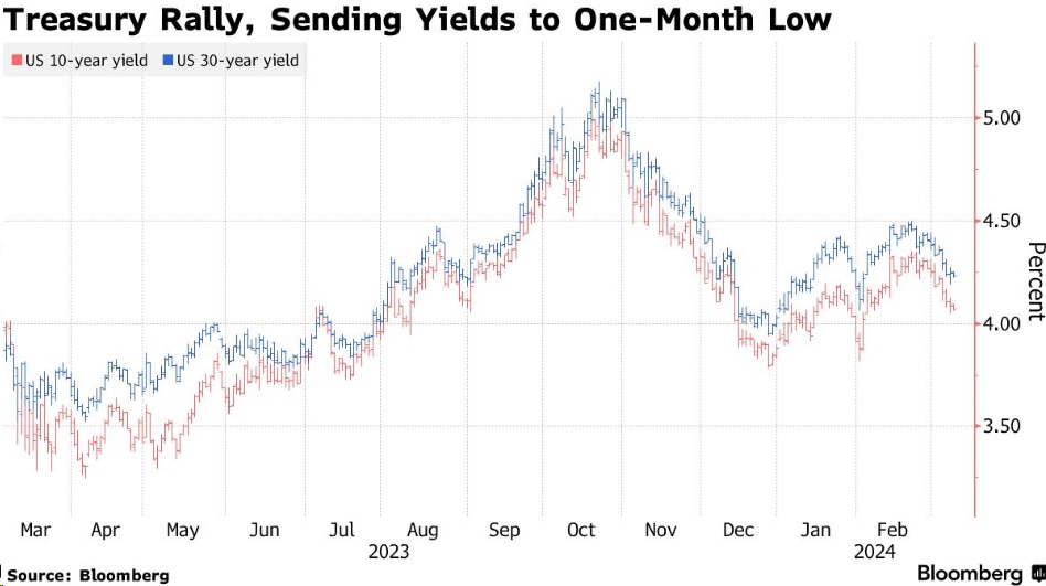 在美联储主席鲍威尔本周发表鸽派言论后,投资者希望非农就业数据能再次提振市场。美国国债本周上涨,10年期国债收益率自周一以来下跌近15个基点,因为投资者重新押注今年至少降息75个基点。