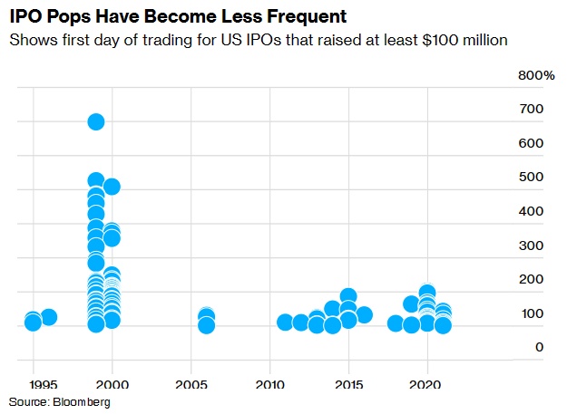 投资者对新股的兴趣有限是另一个指标,表明市场缺乏泡沫时期通常会出现的那种兴奋情绪。数据显示,1999年,在美国融资超过1亿美元的IPO中,约为42%的公司在上市首日收盘时股价上涨了50%或更多。而在2024年,只有一家公司达到了这一标准。