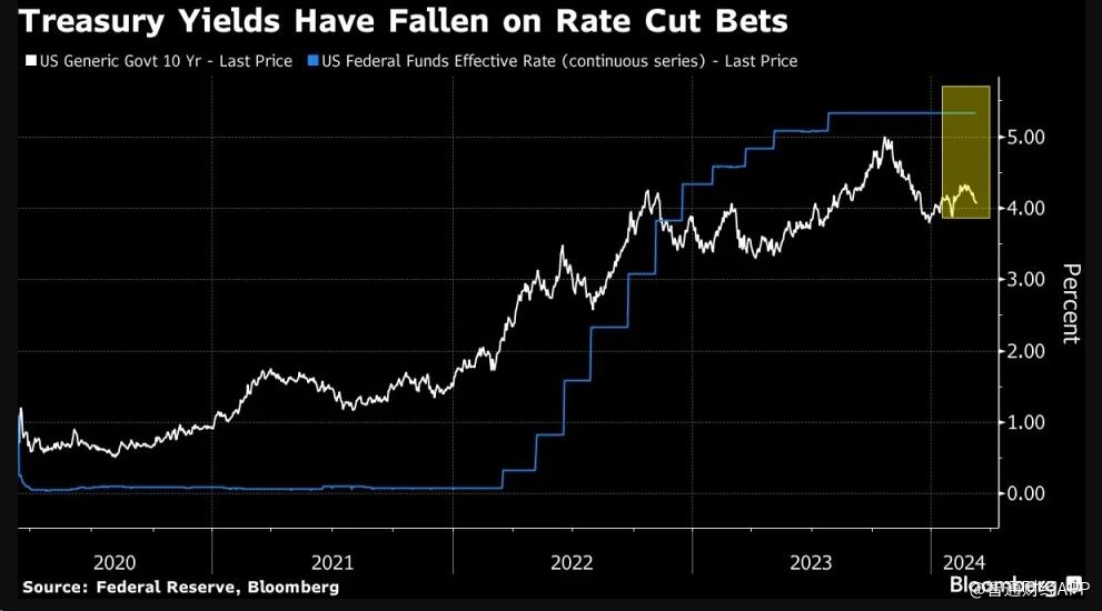 美债收益率因降息押注而下降