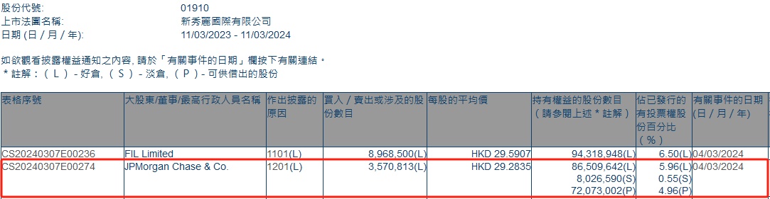 智通财经APP获悉,香港联交所最新资料显示,3月4日,小摩减持新秀丽(01910)357.0813万股,每股作价29.2835港元,总金额约为1.05亿港元。减持后最新持股数目约为8650.96万股,最新持股比例为5.96%。