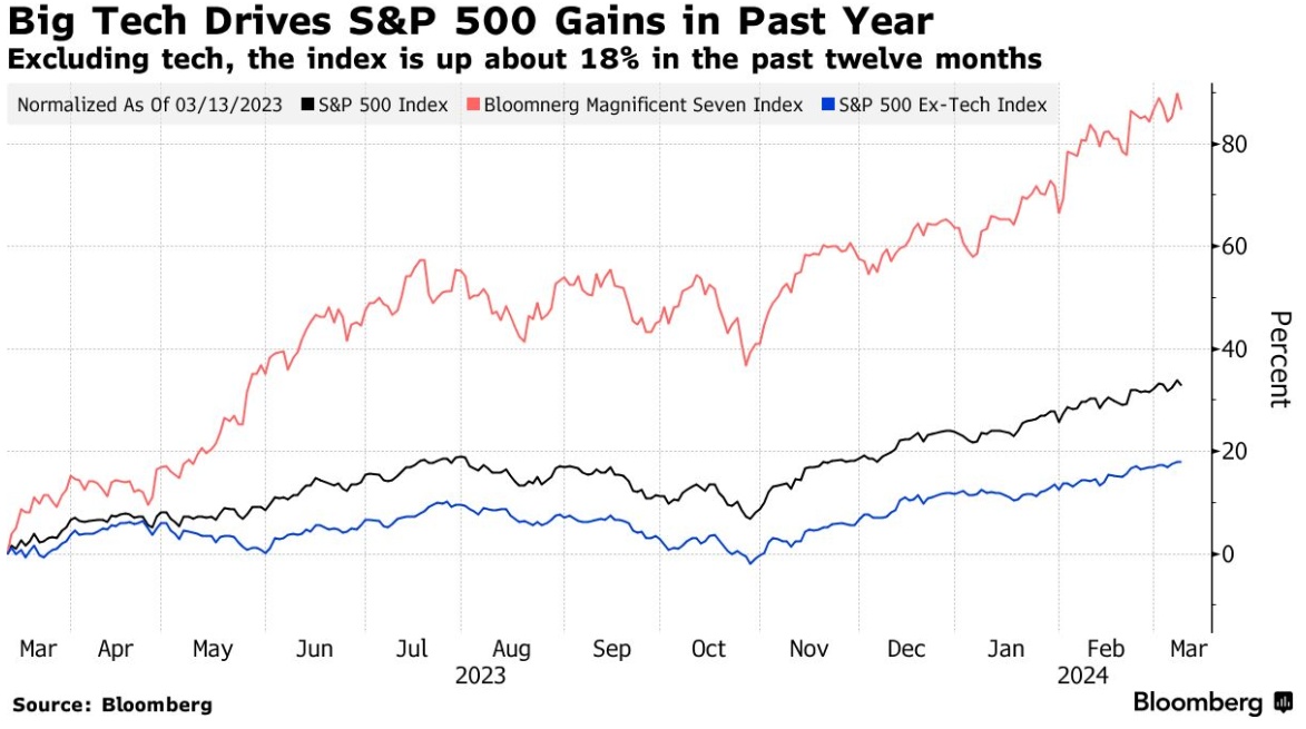 这7只股票——谷歌(GOOGL.US)、亚马逊(AMZN.US)、苹果(AAPL.US)、Meta Platforms(MATE.US)和微软(MSFT.US)、英伟达(NVDA.US)和特斯拉(TSLA.US)——去年推动了标准普尔500指数的最大涨幅。基准指数在2024年创下历史新高,但这些大型股的表现最近出现了分化。