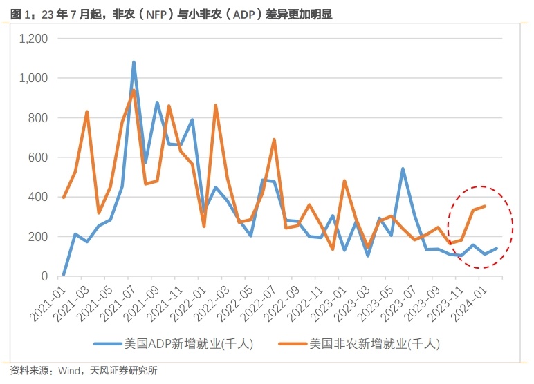 小非农(ADP)与非农(NFP)同为衡量美国就业的关键指标,但是疫情以来,两者之间的走势背离程度愈发加剧。