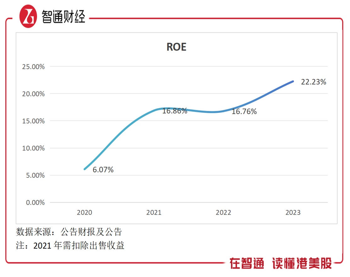 中烟香港拥有强劲的盈利能力,股东净利率水平逐年提升,2023年为5.06%,4.29%,同比提升0.56个百分点,而相比于2020年提升2.02个百分点。如上文分析,该公司权益杠杆率并不算高,但凭借强劲盈利能力获得较高的ROE水平,2023年为22.23%,同比提升5.47个百分点及较2020年提升16.16个百分点。
