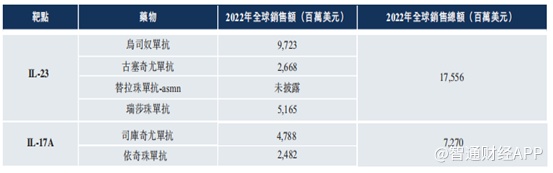 作为银屑病治疗的第二代生物药,IL抑制剂的赛道并不拥挤,向来由跨国药企占据大多数市场份额。在IL-17及IL-23两个常见银屑病治疗靶点中,乌司奴单抗所靶向的IL-23在银屑病发病机制中处于Th17信号通路的上游,靶向IL-23(包括IL-12/23)可实现更深和更持久的炎症缓解,在临床研究中显示出更优越的长期疗效及安全性。