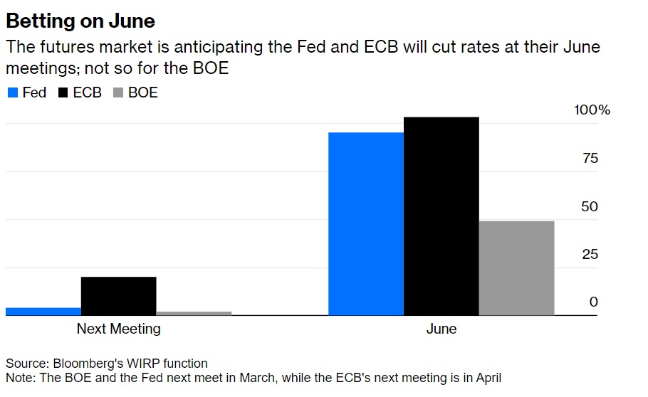 押注六月——利率期货市场预计美联储和欧洲央行将在6月份的政策会议上降息;但英国央行有可能并非如此