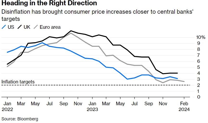 美联储和欧洲央行的政策制定者们似乎准备好在今年年中的货币政策会议上宣布开启降息,有着“抗通胀急先锋”之称的英国央行届时可能将被迫效仿。