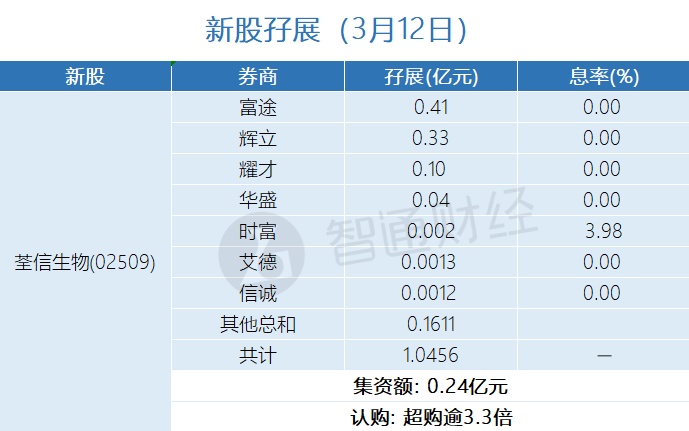 新股孖展统计 | 3月12日
