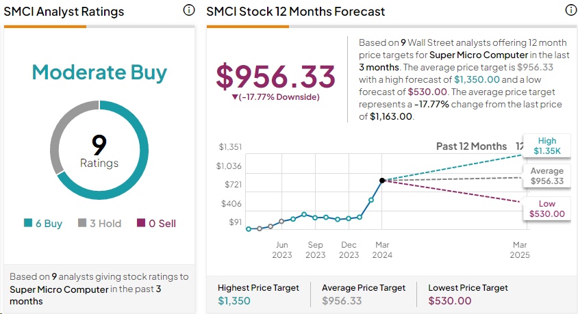 总体而言,华尔街分析师予超微电脑“适度买入”评级,平均目标价为956.33美元,较当前水平下降18%。