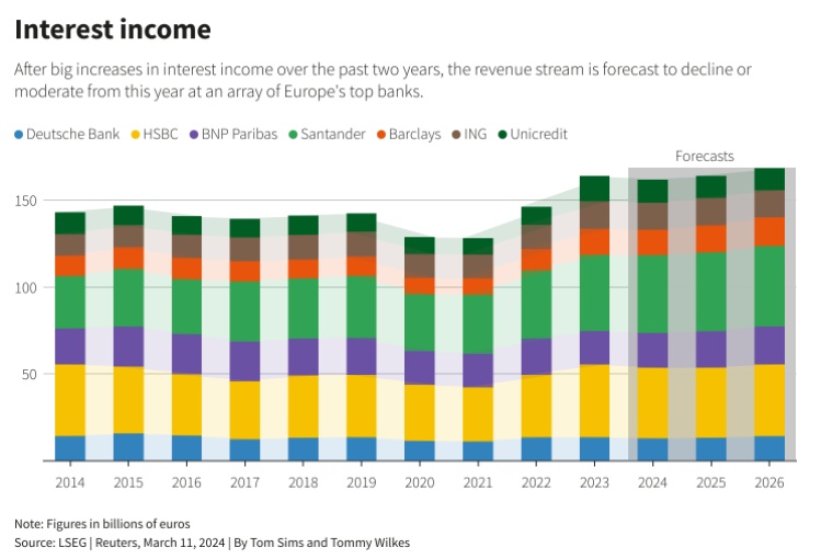 不过,随着利率见顶,分析师预计银行利润将趋于平稳,然后下滑。