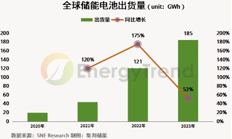2023年,终端需求的“熄火”让市场热度一度降到“冰点”,供需错配导致内卷竞争愈演愈烈。尽管如此,据SNE数据显示,从全球范围来看2023年储能电池出货量仍达185GWh,保持高增。