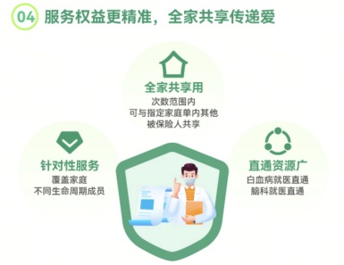 4、11项健康增值服务,可全家共享使用。产品配置11项“GO健康管理服务”,且在服务次数范围内,可与家庭其他被保险人共享。从健康咨询、视频问诊到大病专治,为家庭成员的健康保驾护航;提供全年7*24小时的健康咨询,平台覆盖30万+三甲医院在职医生,仅需一键申请;被保人不幸罹患重疾后,可享受院中生活照护及全程陪护服务,无需子女配偶请假,专业护工提供24小时院中陪护;根据客户需求,可协助送药上门或客户自行去药店购买;并提供白血病和脑科就医直通,携手专业医疗机构让客户可以第一时间接受精准诊断和治疗。