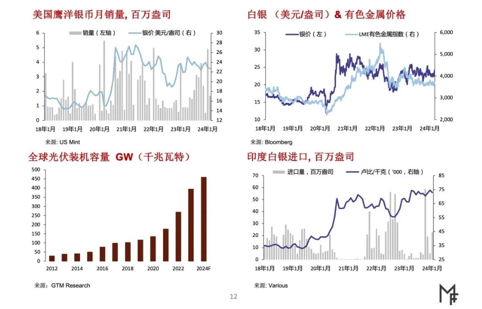 展望未来,由于金价预测值上调, Metals Focus小幅上调了2024年的银价预测值。