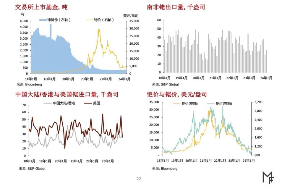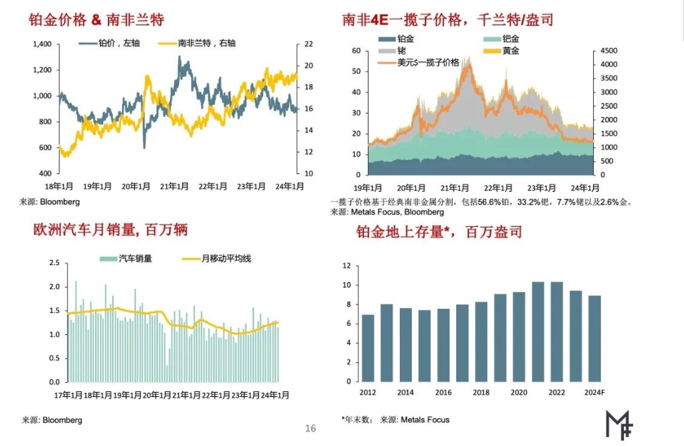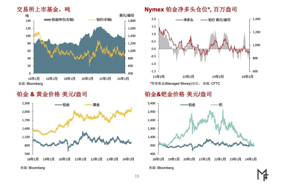 为反映迄今铂价表现较弱,该机构已下调2024年一季度的铂价预测均值。