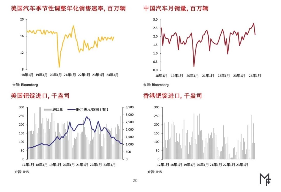 由于美国个人消费支出价格指数(PCE)升幅下降,叠加经济数据疲软强化了美联储6月份就将开始降息的预期,3月早期投资者对贵金属的信心急剧转强。尤为引人注目的是,截至撰写本报告之时金价已迭创历史新高。日内钯价涨幅也超过10%,不过可能主要是因为今年早些时候大幅下跌。
