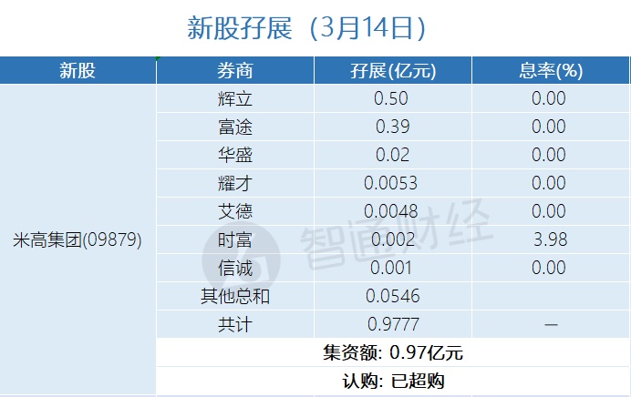 新股孖展统计 | 3月14日