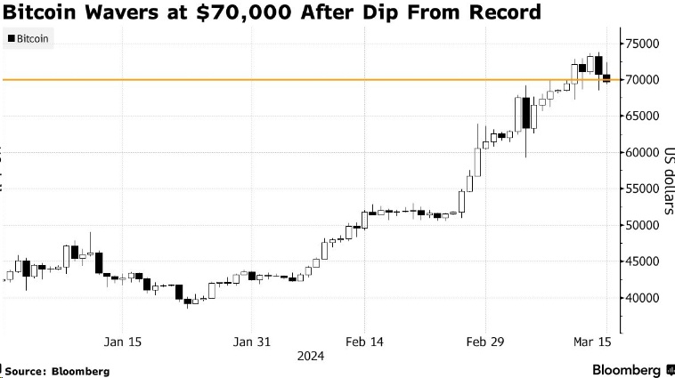 智通财经APP获悉,比特币从最近的历史高点回落,目前有关加密货币最新一轮牛市是否证明全球市场存在投机泡沫的争论愈演愈烈。截至发稿,比特币下跌约3%,至68631美元,一天前创下了近73798美元的历史峰值。