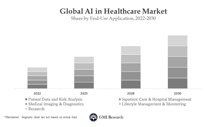 GMI Research最新研究报告显示,2022年融合AI技术的医疗保健市场价值仅仅约为104亿美元,预计2030年有望达到1899亿美元,在此期间的年复合增速(CAGR)高达43.7%。GMI Research表示,在分析极其复发的医疗数据时,AI往往能够以更短的时间和更低的成本执行任务,从而大幅优化患者、医生和医院管理人员之间的联系;并且该机构预计AI有望全面应用于医学成像、药物发现、医疗手术辅助机器人、基因级别的精准医疗等领域,大幅缩减产品创新周期、全面提高现代医学的精准率以及在同样的时间内覆盖更大范围的患者。