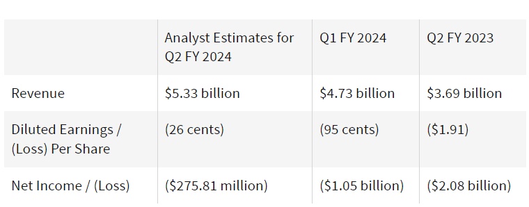 据了解,根据Visible Alpha汇编的华尔街分析师预期,分析师们普遍预计美光2024财年第二季度的收入将达到53.3亿美元,高于上一季度以及2023年同期。数据加上预期的营收增长,该公司预计将录得2.76亿美元(摊薄后大约每股亏损26美分)左右的净亏损,较上年同期高达20.8亿美元(合每股亏损1.91美元)的亏损明显收窄。这两项数据都符合美光提供的季度指引。
