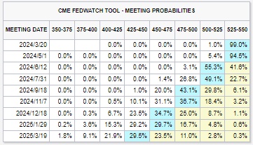 在30次模型运行中,8次暗示美联储加息,18次呼吁降息。鲍威尔在上次FOMC会后新闻发布会上被记者追问这个问题。鲍威尔可能知道而记者们不知道的是,美联储有意保持高利率,以避免助长泡沫和/或另一次通胀飙升。美联储目前的利率政策几乎肯定会在已经放缓的经济领域造成更多的短期失业。然而,从长远来看,通过防止不当投资,他们将为更低的失业率和更高效的经济创造条件,这也可能是真的。投资者目前预计美联储将在6月开始降息,糟糕的通胀报告和投资者的热情可能会促使美联储打消这一想法,并维持利率在高位,直到市场明白这一信息。