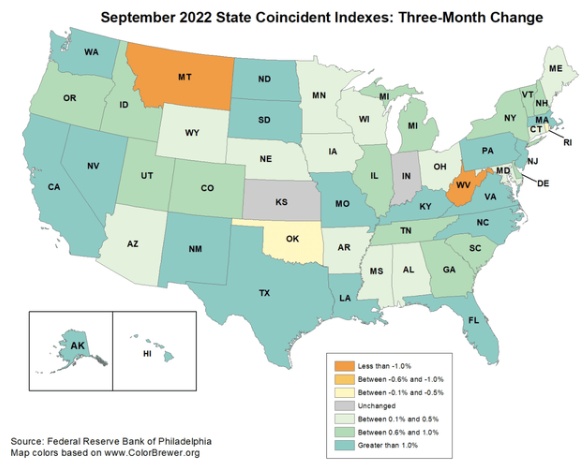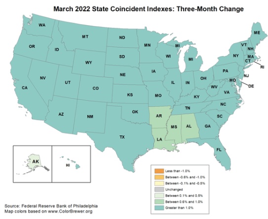 下午是2022年3月美联储开始加息时美国各州的经济状况。
