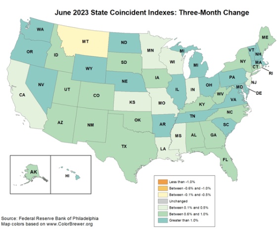 2023年6月,情况继续降温——大型人口中心(东海岸、佛罗里达州、加利福尼亚州和德克萨斯州)从快速增长转为缓慢增长。
