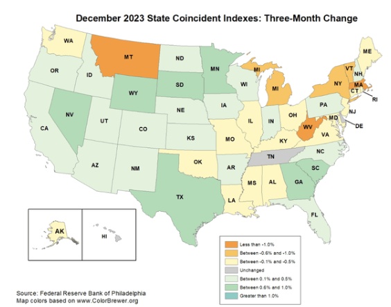现在数据明显变化——美国东北部和中西部陷入衰退,而一些阳光地带的州则表现得更好。