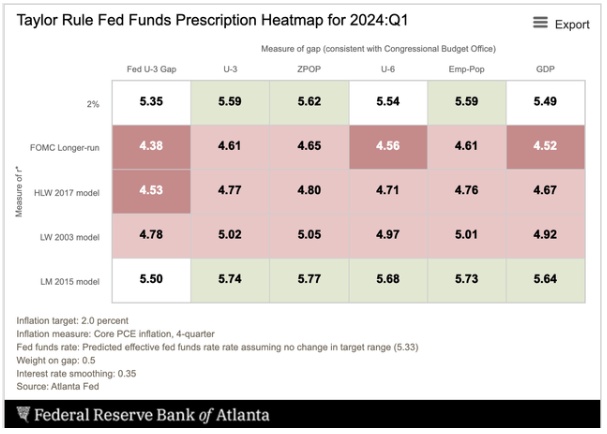 美联储曾试图改变银行资本金要求,以控制贷款和投机行为,但银行业游说团体疯狂地进行了反击,这些规定可能会被淡化。因此,美联储现在正试图通过维持高利率来遏制正在形成的资产泡沫。美联储的老派思维是忽视资产泡沫,但央行官员们的新做法是,在泡沫长期扭曲和损害经济之前,通过收紧政策,越来越多地遏制资产泡沫。2000年,前美联储主席艾伦•格林斯潘也采取了这一措施,在没有造成大量失业的情况下,他们成功地戳破了泡沫。结果是标普500指数下跌了50%。美联储将利率维持在5.5%,但许多使用泰勒规则的模型运行都表明美联储应该降息。