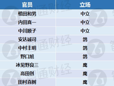 主张积极放宽货币政策的前学者野口旭(Asahi Noguchi)和前经济学家安达诚司(Seiji Adachi)也被认为是鸽派。