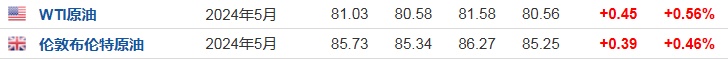 3.截至发稿,WTI原油涨0.56%,报81.03美元/桶。布伦特原油涨0.46%,报85.73美元/桶。