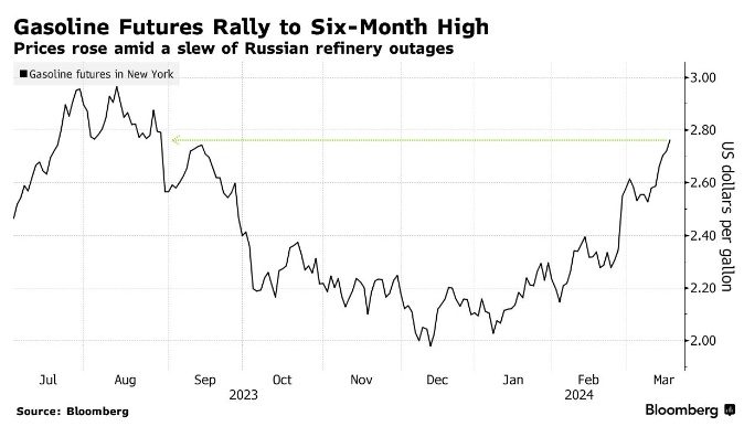 智通财经APP获悉,由于俄罗斯炼油厂的供应中断,以及美国燃料库存的减少加剧了对夏季驾驶月份到来之前的供应担忧,美国汽油期货触及六个月高点。