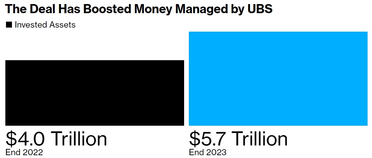 对瑞银来说,最明显的影响是规模的增长,如果要实现有机增长,则需要多年的艰苦工作来建立客户关系。一夜之间,其财富部门管理的客户资金激增约五分之一,达到3.4万亿美元。