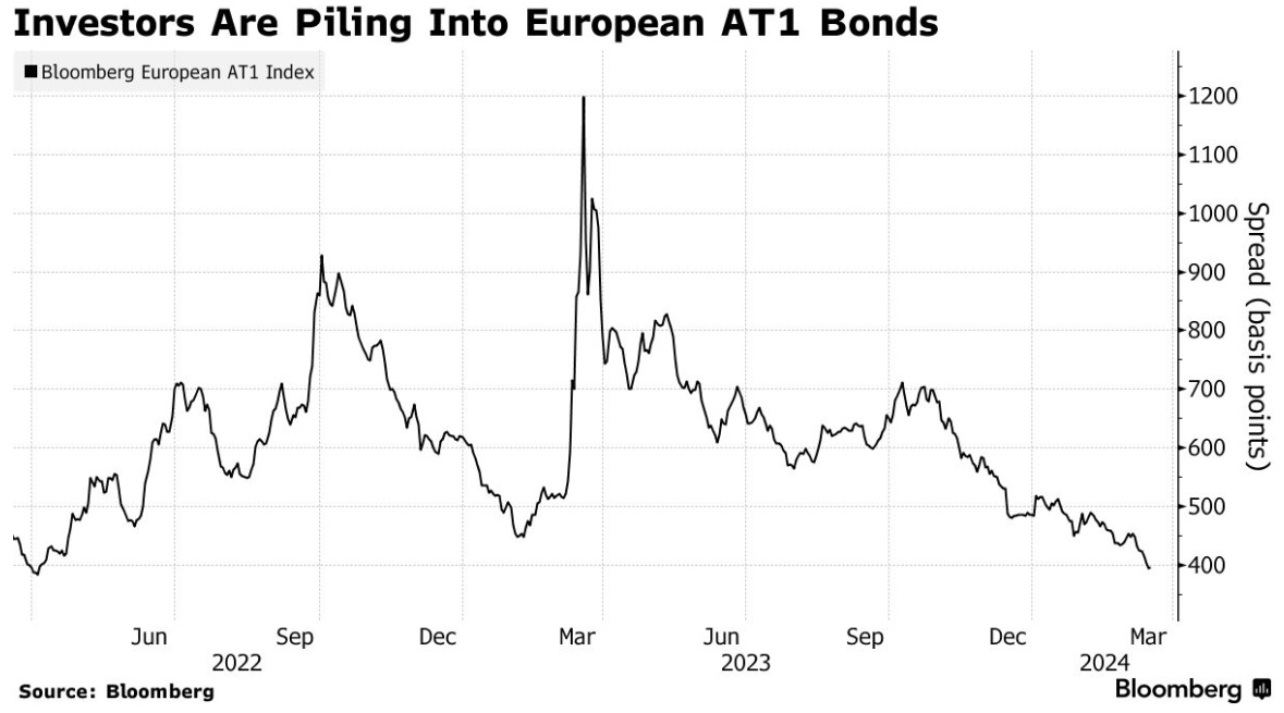 不管怎么说,被瑞士信贷紧急交易摧毁的高风险债务证券市场正像多年来一样火爆。瑞士监管机构当时取消了瑞信所有价值约170亿美元的所谓AT1债券,这基本上为瑞银的交易提供了便利。