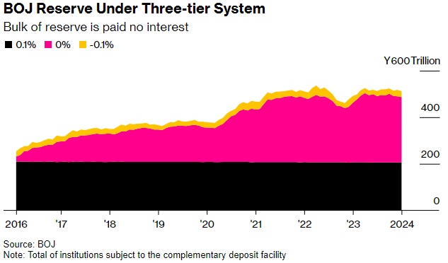 三层体系下的日本央行储备金:大部分准备金不支付利息