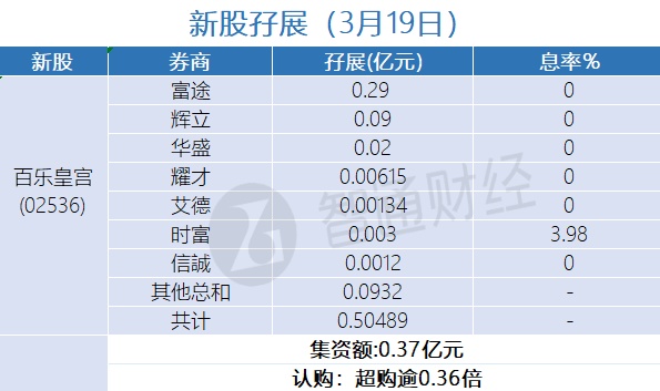 新股孖展统计 | 3月19日