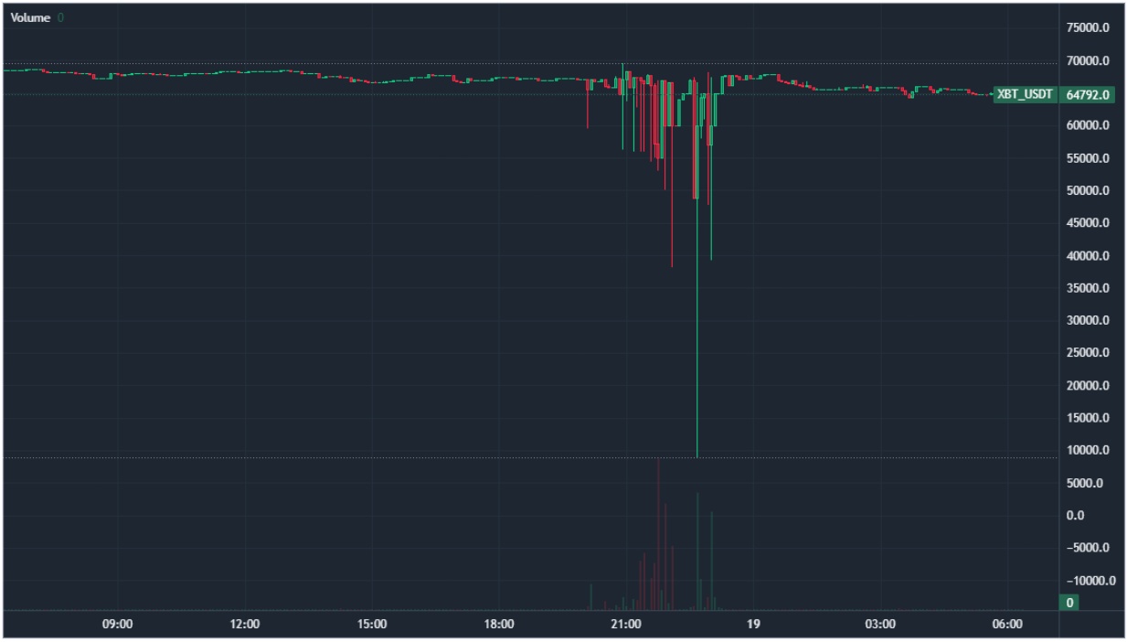 智通财经获悉,加密货币交易所BitMEX正在调查导致其平台上比特币昨日闪崩的异常交易活动。周一晚些时候,比特币兑Tether的USDT稳定币的价格在BitMEX跌至8900美元的低点,而相比之下,比特币在该公司竞争对手的交易场所的交易价格超过了6.6万美元。随后,比特币在BitMEX的价格迅速回升,截至发稿,交易价格为6.43万美元。