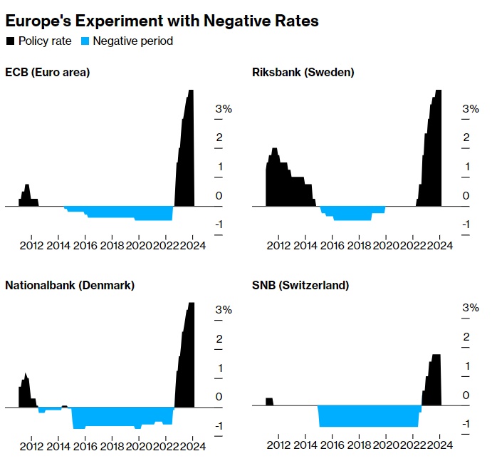 丹麦的货币政策是欧洲央行的影子,该国在2022年9月结束了自己的负利率尝试,比瑞士央行早了几周。
