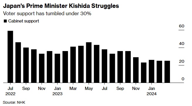 更高的薪资、加上从6月开始的一次性减税,可能有助于岸田文雄将公众的注意力转移到经济的积极方面,而不是他长期执政的自民党内部的一系列丑闻。扭转糟糕的民意调查结果对岸田文雄在9月前继续执政至关重要,届时自民党将举行党魁竞选。一些人预计,此后不久日本也将举行大选。