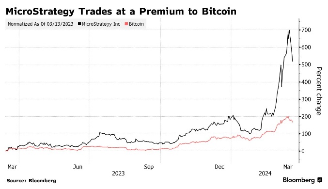 根据计算,鉴于MicroStrategy约240亿美元的市值、其债务以及华尔街许多人赋予这家公司核心业务约15亿美元的价值,其股价相对于其资产负债表上比特币的价值有90%以上的溢价。