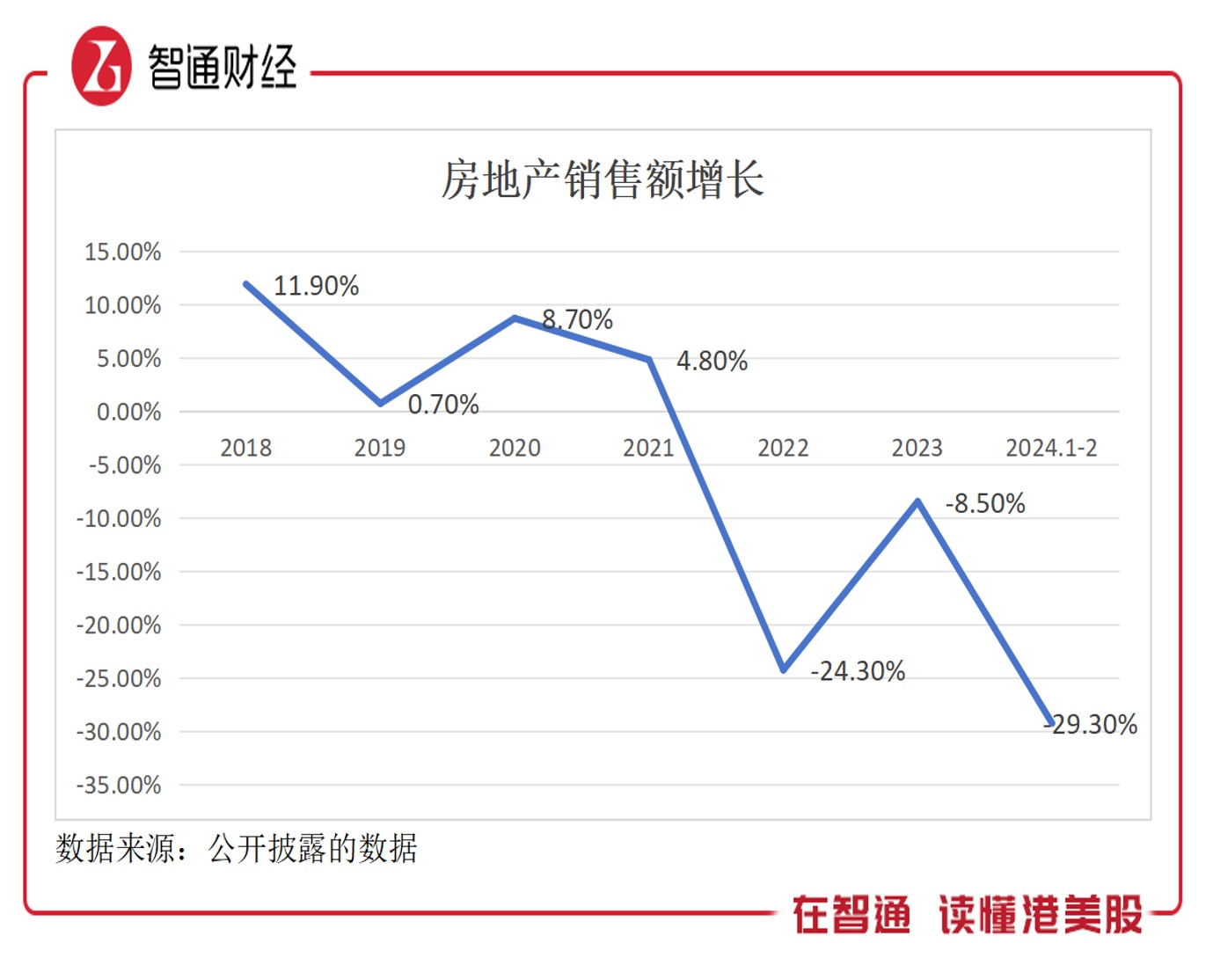 房地产行业制约该公司的成长前景,行业于2018年收入增速开始放缓,2022年开始步入衰退期,行业多个龙头暴雷后,虽然行业政策利好不断,购房者都怕踩雷大都处于观望情绪,房地产销售愈加艰难。2024年前两个月,房地产销售额下降幅度达29.3%,要知道行业已经连续两年下滑了,今年将是下滑的第三个年头。